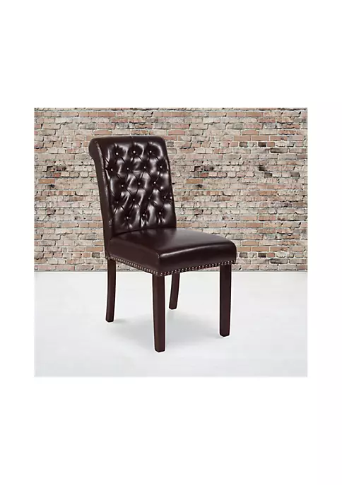 Beauty may be only skin deep but this parsons chair is more than a pretty face. The solid hardwood frame construction holds up to 300 lbs. static weight to accommodate most users. Solid wood legs in a walnut finish round out the overall appeal of this timeless piece.