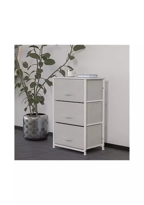 - 3 Drawer Storage Organizer for Bedroom & Closet for stylish storage solutions | Easy Pull Light Gray Polypropylene Drawers are fade and stain resistant | Drawer Size (3): 15.875″W x 11″D x 8.5″H | MDF Top supports up to 40 lbs. static weight capacity | Cross Brace Supports prevent unit from leaning | Rust Resistant White Cast Iron Frame with Long-Lasting Metal Screw Construction