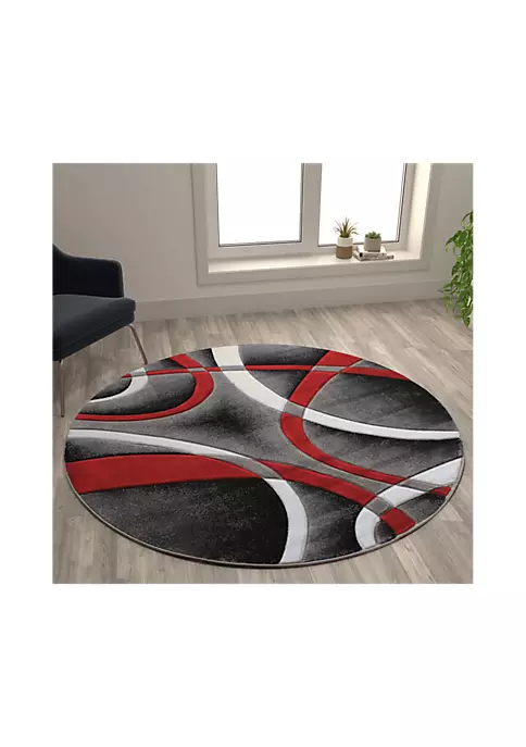 β’ Modern 5′ x 5′ Round Plush Abstract Area Rug for Indoor Use