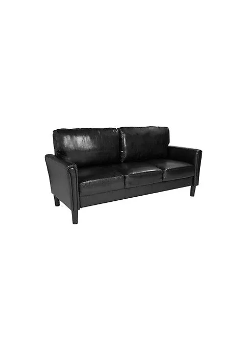 - Contemporary Style Black LeatherSoft Sofa | Mid-Back Design for extra support | Tailored Arms relieve pressure from the neck and shoulders | Loose Back Cushions | Hook and loop system keeps back cushions uniform | Generously Padded with CAL 117 Fire Retardant Foam