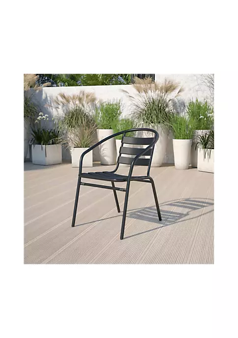 - Contemporary Patio Chair for Indoor and Outdoor Use | 352 lb. Weight Capacity | Stack Quantity: 22 | Curved Aluminum Triple Slat Back with Textured Seat to ensure safe seating | Electrophoresis Process protects chair from rusting | Designed for Commercial or Residential Use