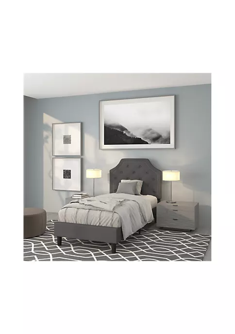 When your bedroom needs change, start with your bed frame, the headboard with cutout sides is a statement piece all on its own. The panel headboard features gorgeous nail trimming and button tufted upholstery. The low frame will keep the bedroom feeling open. If you don’t like making up the bed, this bed is perfect since it is designed without a footboard. The frame features a center support leg and 15 wooden slats that are designed to support your mattress without the use of a box spring.