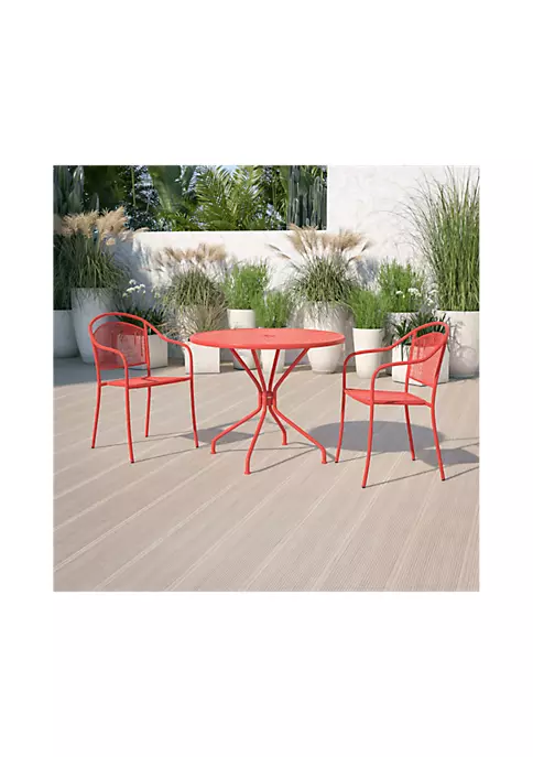 - Patio Table | Top Size: 35.25″ Round | Base Size: 17.5″W | 1″ Edge Top | Rain Flower Designer Top with Umbrella Hole | Umbrella Hole: 1.5″ Dia.; 12.5″ from Floor