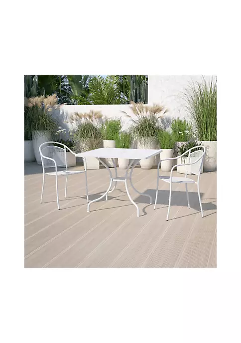 - Patio Table | Top Size: 35.5″ Square | Base Size: 27″W | 1″ Edge Top | Rain Flower Designer Top with Umbrella Hole | Umbrella Hole: 1.75″ Dia.; 14.5″ from Floor