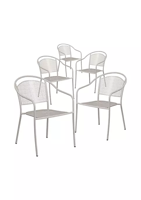 - Set of 5 Stackable Patio Chairs | Stack Quantity: 8 | Curved Round Back Design | Integrated Arms | Rain Flower Back and Seat Design | Sky Blue Powder Coated Frame Finish