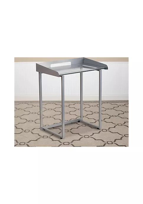 - Contemporary Style Computer Desk | Compact Sized Desk | Clear Tempered Glass Surface | 6mm Thick Glass | Cutout for Wire Management | Raised Border