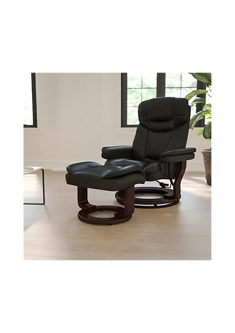 - Recliner and Ottoman Set for home or office use | Black LeatherSoft Upholstery | Plush Arms | Infinite Adjustments from upright to fully reclined with the lever under the right arm | 7″ Wall clearance to fit in small spaces | Ottoman Size: 19.75″W x 18″D x 16.25″H