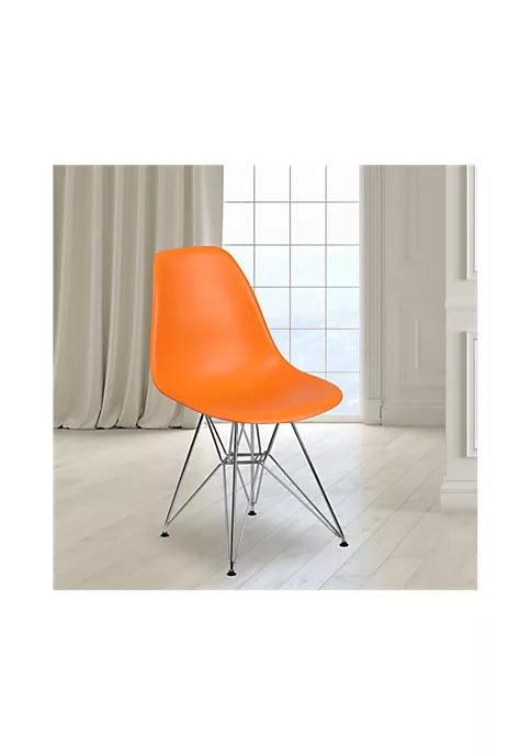 - Accent Side Chair | Orange Plastic Finish | Back Width: 11-16″ | Polypropylene Molded Structure | Waterfall Seat reduces pressure on your legs | Chrome Base with Bracing