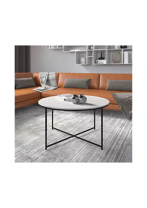 - Modern Coffee Table for use in the home | White Marble Finish Engineered Wood Top for durability | Round Top and Base pairs with most furniture | Matte Black Frame adds upmarket looks to your d | Powder Coated Frame for long-lasting use | Floor Glides protect hard flooring surfaces
