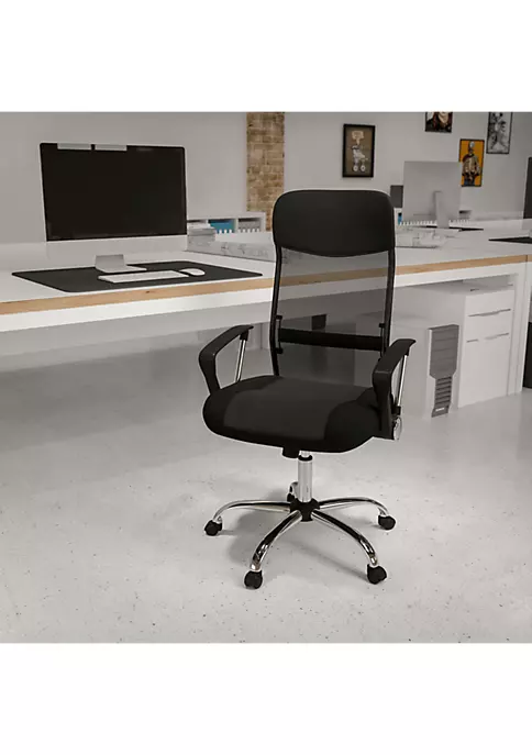 - Contemporary Task Office Chair | High Back Design with Leather Headrest | Ventilated Mesh Back | Built-In Lumbar Support | Tilt Lock Mechanism rocks/tilts the chair and locks in an upright position | Padded Black Leather and Mesh Upholstered Seat with CAL 117 fire retardant foam