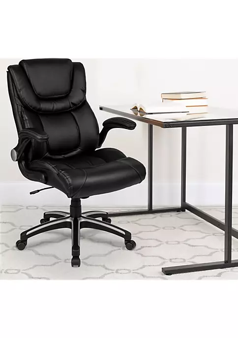 - Contemporary Office Chair | Black LeatherSoft Upholstery | High Back Design with Headrest | Built-In Lumbar Support | Tilt Lock Mechanism rocks/tilts the chair and locks in an upright position | CAL 117 Fire Retardant Foam