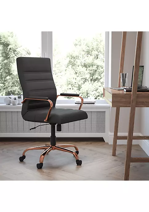 - Modern Executive Office Chair with Arms | Black LeatherSoft is Soft and Durable | High Back Design with lumbar support | Swivel Seat with CAL 117 Fire Retardant Foam | Waterfall Seat reduces pressure on your legs | Tilt Lock Mechanism rocks/tilts the chair and locks in an upright position