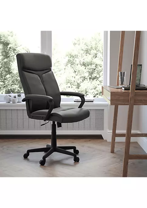 - Contemporary Adjustable Executive Office Chair | 250 lb. Weight Capacity | Black LeatherSoft Upholstery | High Back Design with Headrest | Tilt Lock Mechanism rocks/tilts the chair and locks in an upright position | 4″ Thick Foam Padded Seat with CAL 117 Fire Retardant Foam