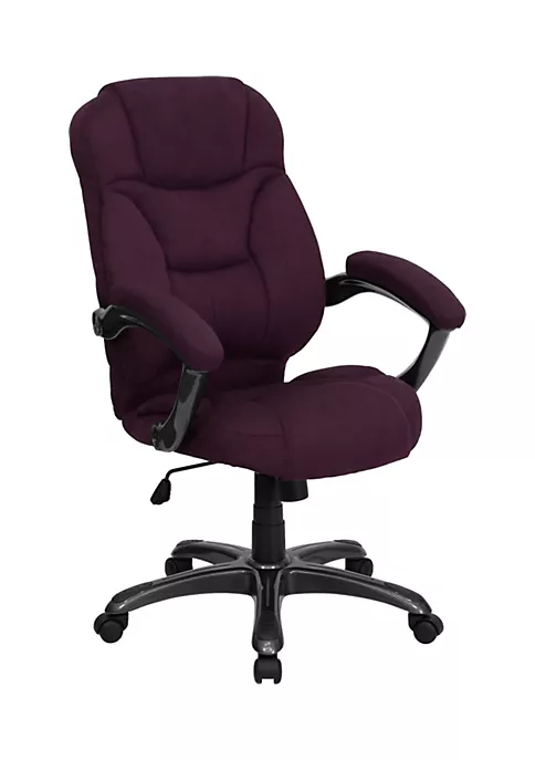 - Contemporary Executive Office Chair | Navy Blue Microfiber Upholstery | High Back Design with Headrest | Built-In Lumbar Support | Contoured Back and Seat | Waterfall Seat reduces pressure on your legs