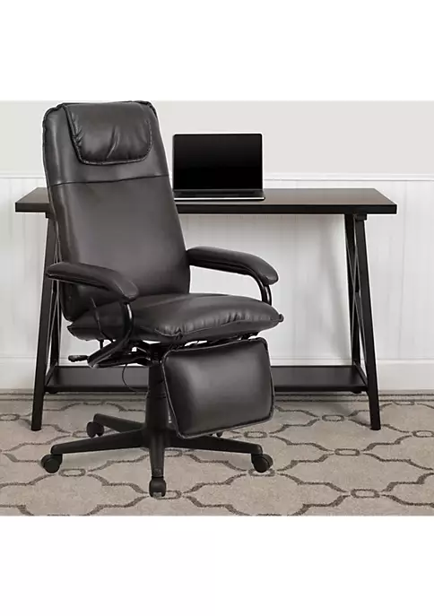 - Contemporary Reclining Executive Office Chair | Brown LeatherSoft Upholstery | High Back Design with Headrest | Reclining Back Paddle Control | Easy Touch Height Adjustable Footrest Lever | Depth Adjustable Footrest