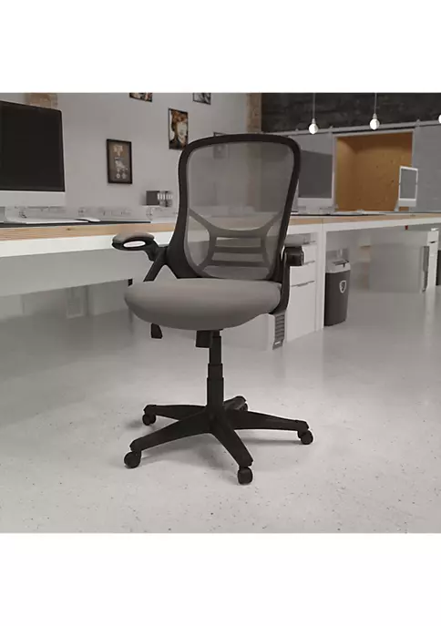 - Contemporary Executive Office Chair with Flip-Up Arms | High Back Design with breathable mesh material | Built-In Lumbar Support | Tilt Lock Mechanism rocks/tilts the chair and locks in an upright position | Tilt Tension Adjustment Knob adjusts the chair’s backward tilt resistance | Waterfall Seat reduces pressure on your legs