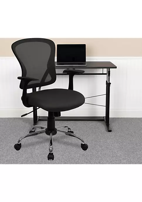 - Modern Colorful Task Office Chair | Mid-Back Design | Ventilated Mesh Back | Built-In Lumbar Support | Tilt Lock Mechanism rocks/tilts the chair and locks in an upright position | Padded Dark Gray Mesh Upholstered Seat with CAL 117 Fire Retardant Foam