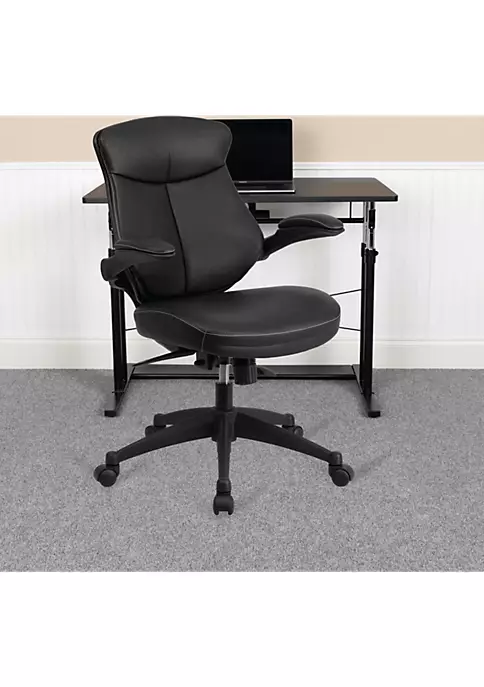 - Contemporary Task Office Chair | Black LeatherSoft Upholstery | Mid-Back Design | Built-In Lumbar Support | Dual Paddle Control Mechanism | Infinite-Locking Back Angle Adjustment helps reduce disc pressure by changing the angle of your torso