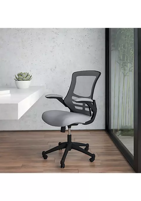 - Contemporary Task Office Chair with Flip-Up Arms | Mid-Back Design with breathable mesh material | Back Width: 17-20″ | Built-In Lumbar Support | Tilt Lock Mechanism rocks/tilts the chair and locks in an upright position | Tilt Tension Adjustment Knob adjusts the chair’s backward tilt resistance