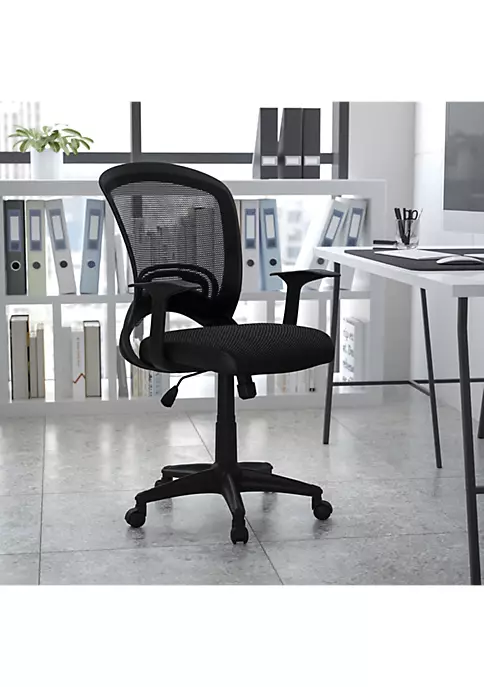 - Contemporary Task Office Chair | Mid-Back Design | Ventilated Decorative Mesh Back | Tilt Lock Mechanism rocks/tilts the chair and locks in an upright position | Padded Black Mesh Upholstered Seat with CAL 117 Fire Retardant Foam | Swivel Seat