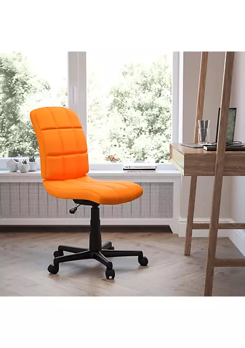 - Modern Adjustable Task Office Chair for home or business use | Pink Quilted Vinyl Tufted Upholstery for a classic look | Mid-Back Design supports the mid to upper back region | Padded Upholstered Seat with CAL 117 Fire Retardant Foam | Waterfall Seat Edge reduces pressure on your legs | 360 Degree Swivel Seat allows you to reach multiple work surfaces
