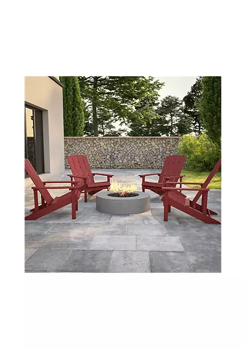 - Set of 4 Contemporary Adirondack Loungers for year round use | Vertical Lattice Back and Slanted Seat encourage relaxation | Extra Wide and Long Arms relieve pressure from the neck and shoulders | Arm Size: 3.5-5″W x 25.5″L | Weather-Resistant Polystyrene Frame won’t splinter | UV Treated to prevent fading and discoloration