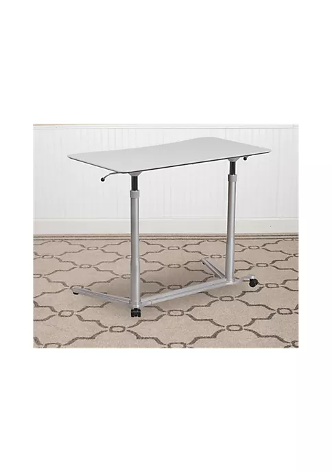 - Contemporary Style | Ergonomic Sit-Down and Stand-Up Desk | Light Gray Laminate Finish | Top Size: 37.375″W x 18.5-20.5″D | .5″ Thick Top | Pneumatic Height Adjustable Frame
