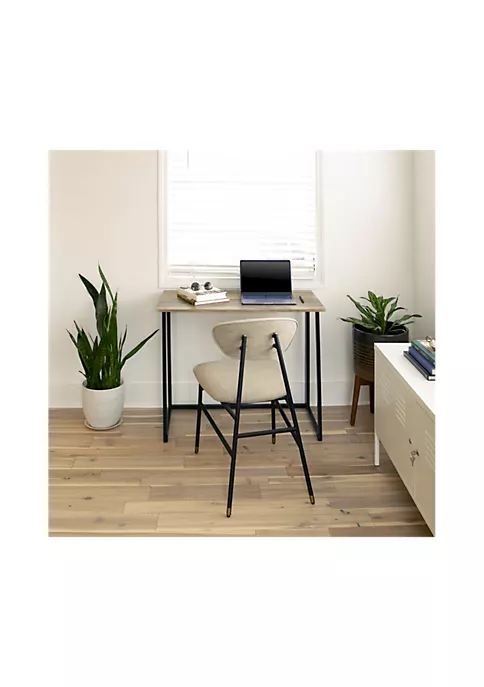 - Industrial Folding Desk for Laptop or Desktops | Flexible: Remote Learning Desk or Work from Home Setup | Desktop Size: 35.5″W x 18″D x .5″ Thick | Folded Size: 35.5″W x 2.75″D x 29.5″H | Chic Pattern Variations in Natural Top | Black Powder Coated Frame Finish with Bracing
