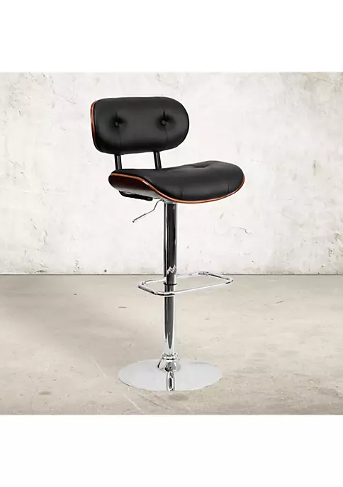 Easily adjust from counter to bar height with the handle located below the seat. The base and square footrest have a chrome finish to complement the chair’s vintage design. To help protect your floors, the base features an embedded plastic ring. Keep this stool looking great with a solvent and water based cleaner such as foam.
